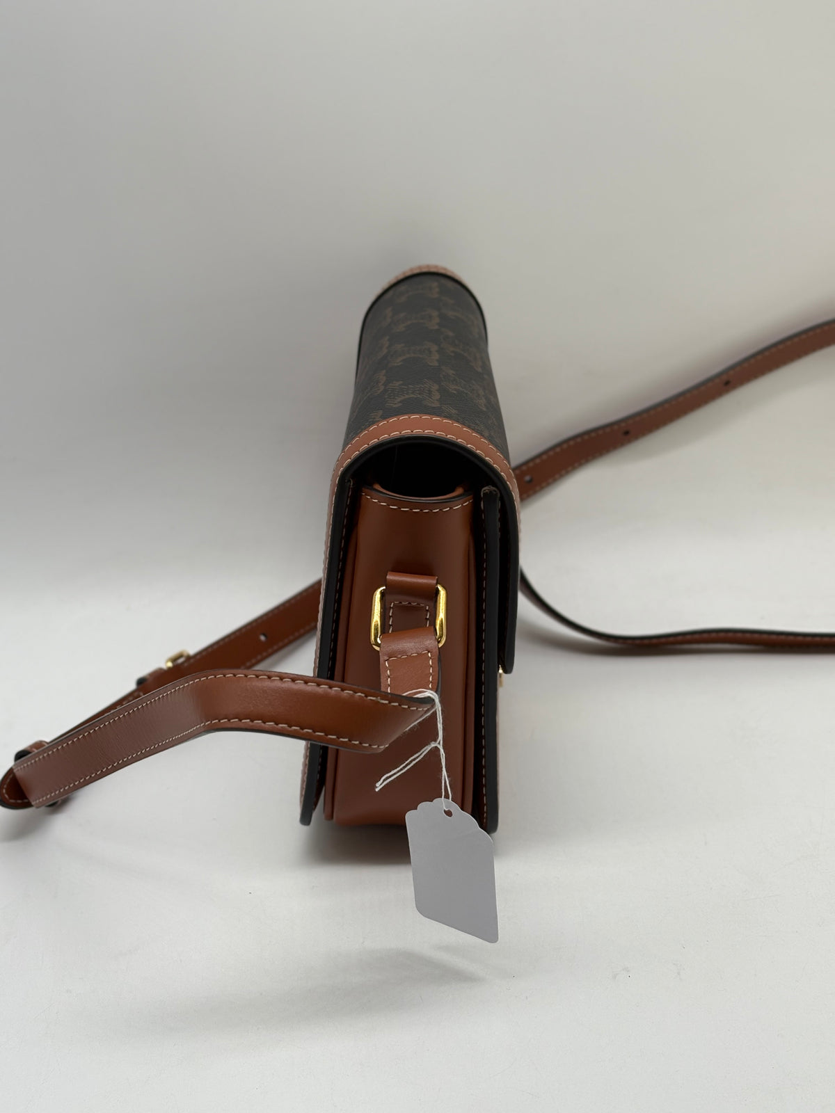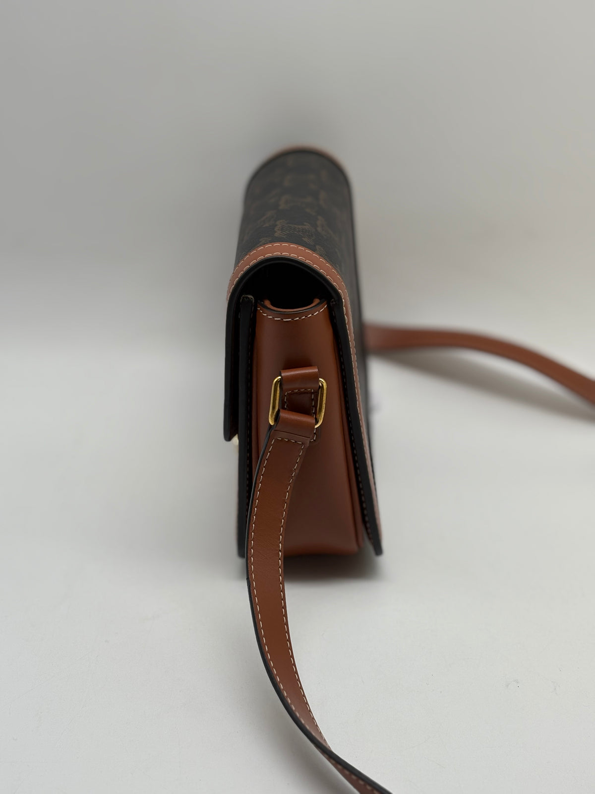 CELINE Triomphe Canvas Calfskin Ava Shoulder Bag Tan