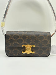 CELINE Triomphe Canvas Calfskin Ava Shoulder Bag Tan