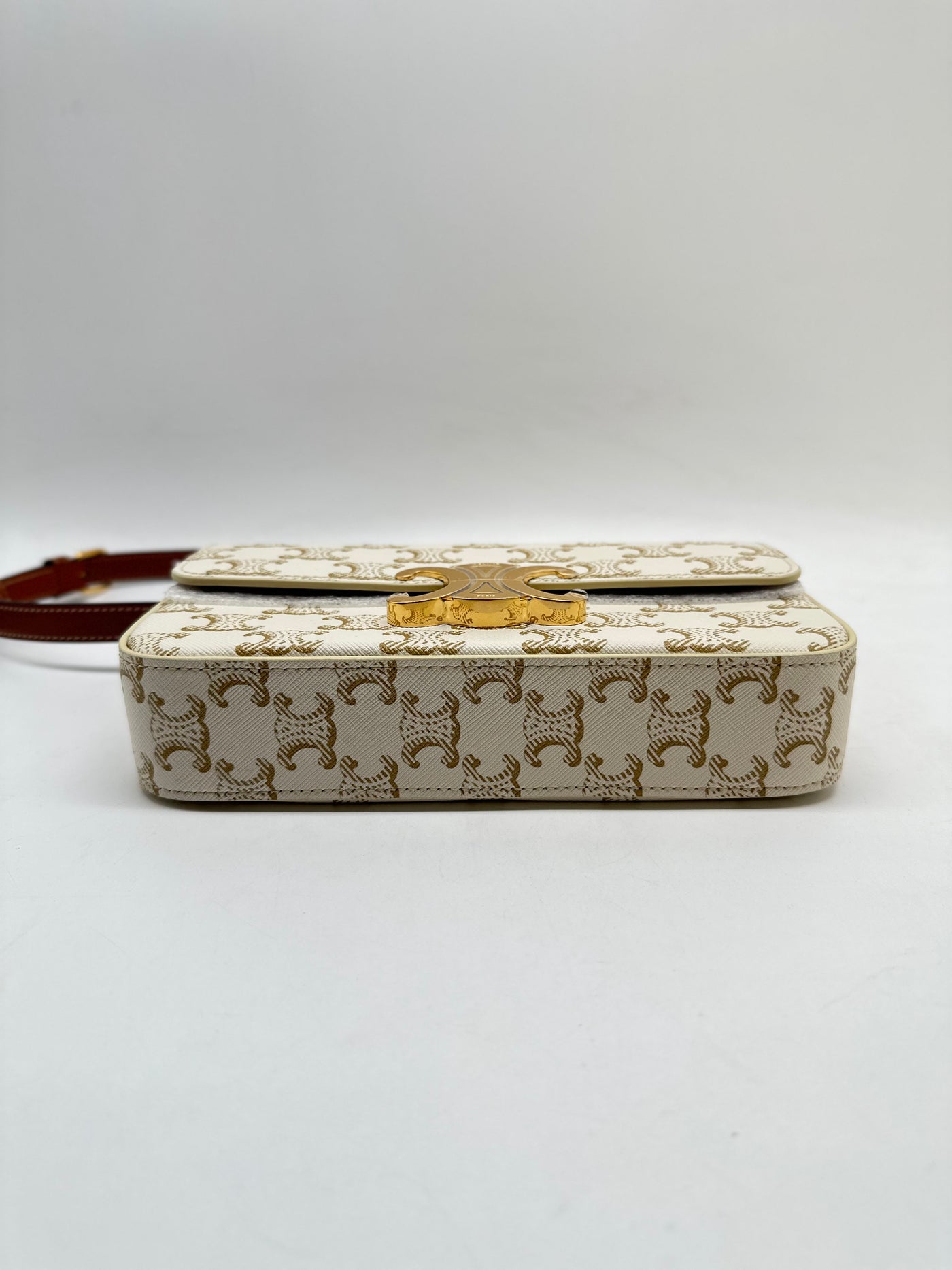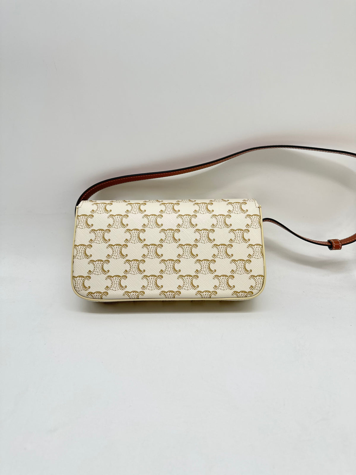 CELINE Triomphe Canvas Calfskin Ava Shoulder Bag Tan