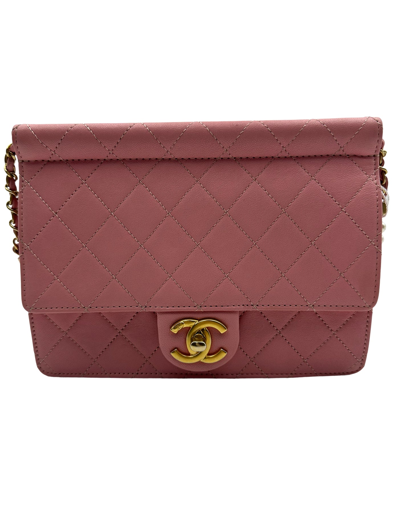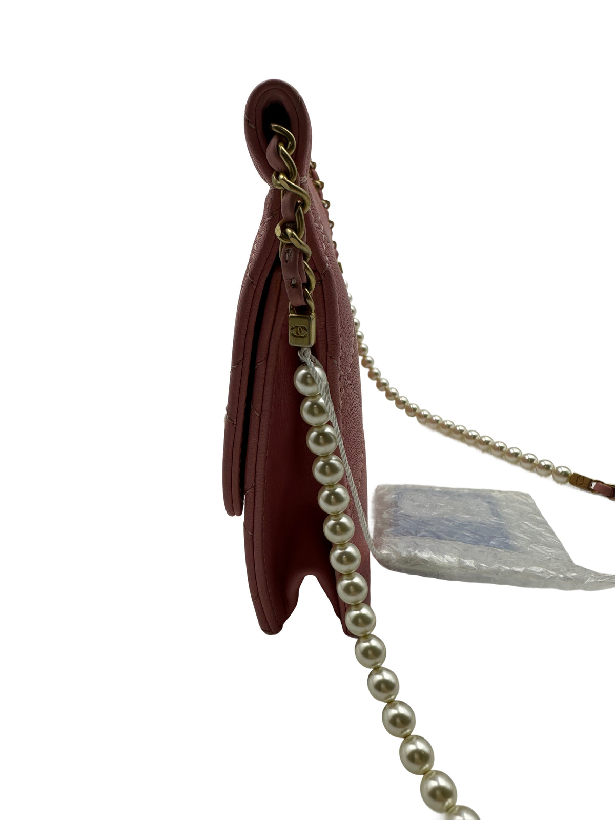 Inform when this item available Chanel Quilted Calfskin Pearl Chain Flap Pink (27***80) CC601