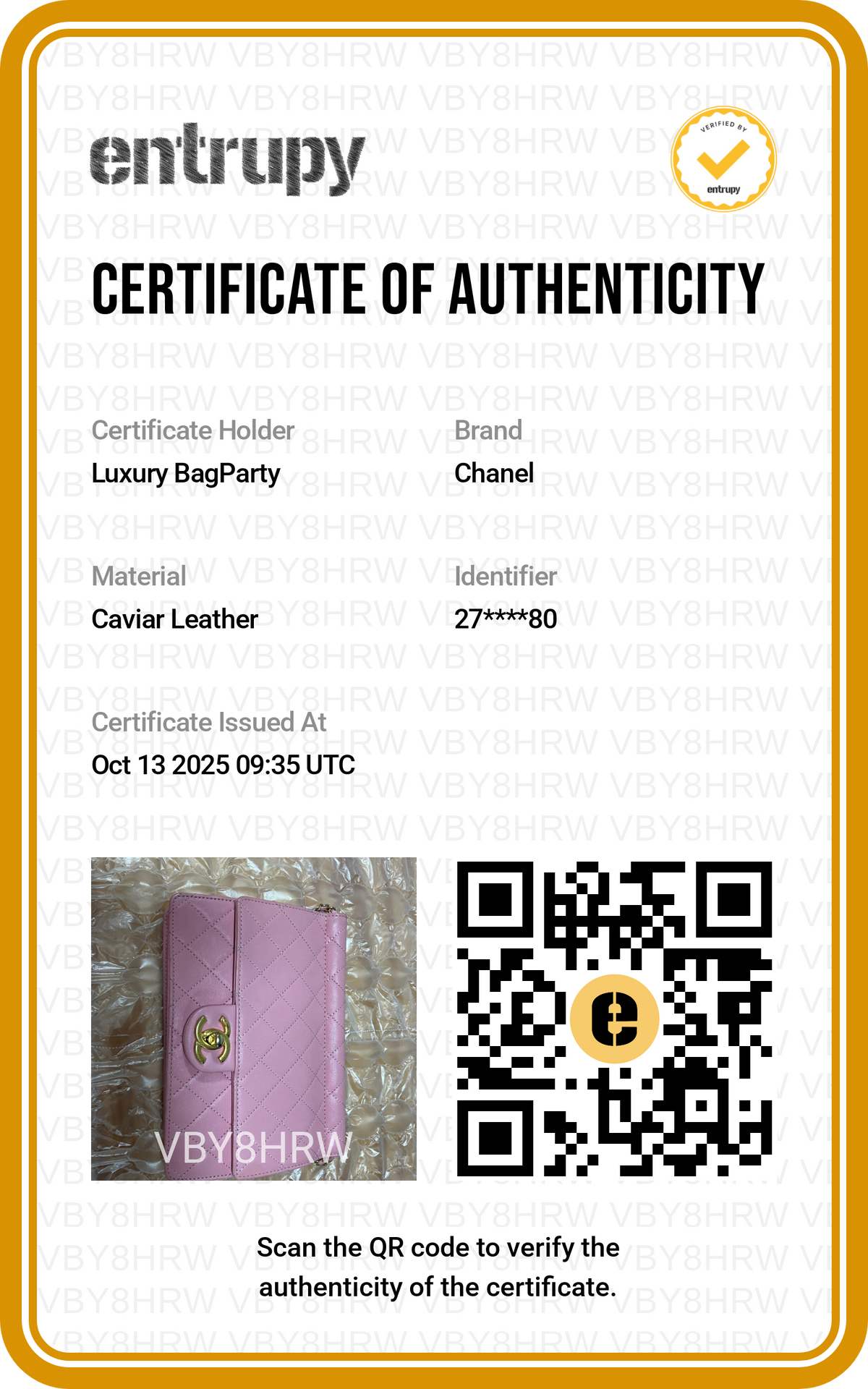 Certificate of Authenticity: Entrupy or Legitmark