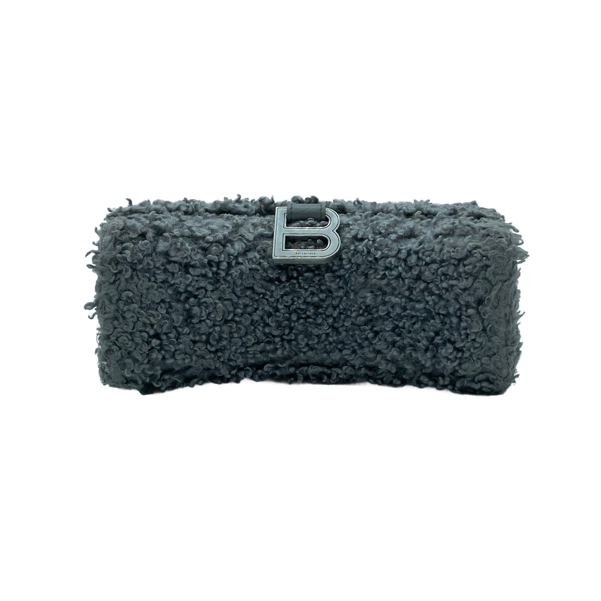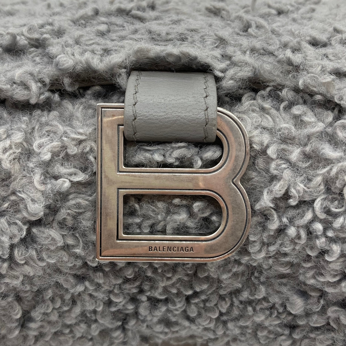 Inform when this item available Balenciaga Hourglass Faux Fur Shoulder Bag Grey BB25