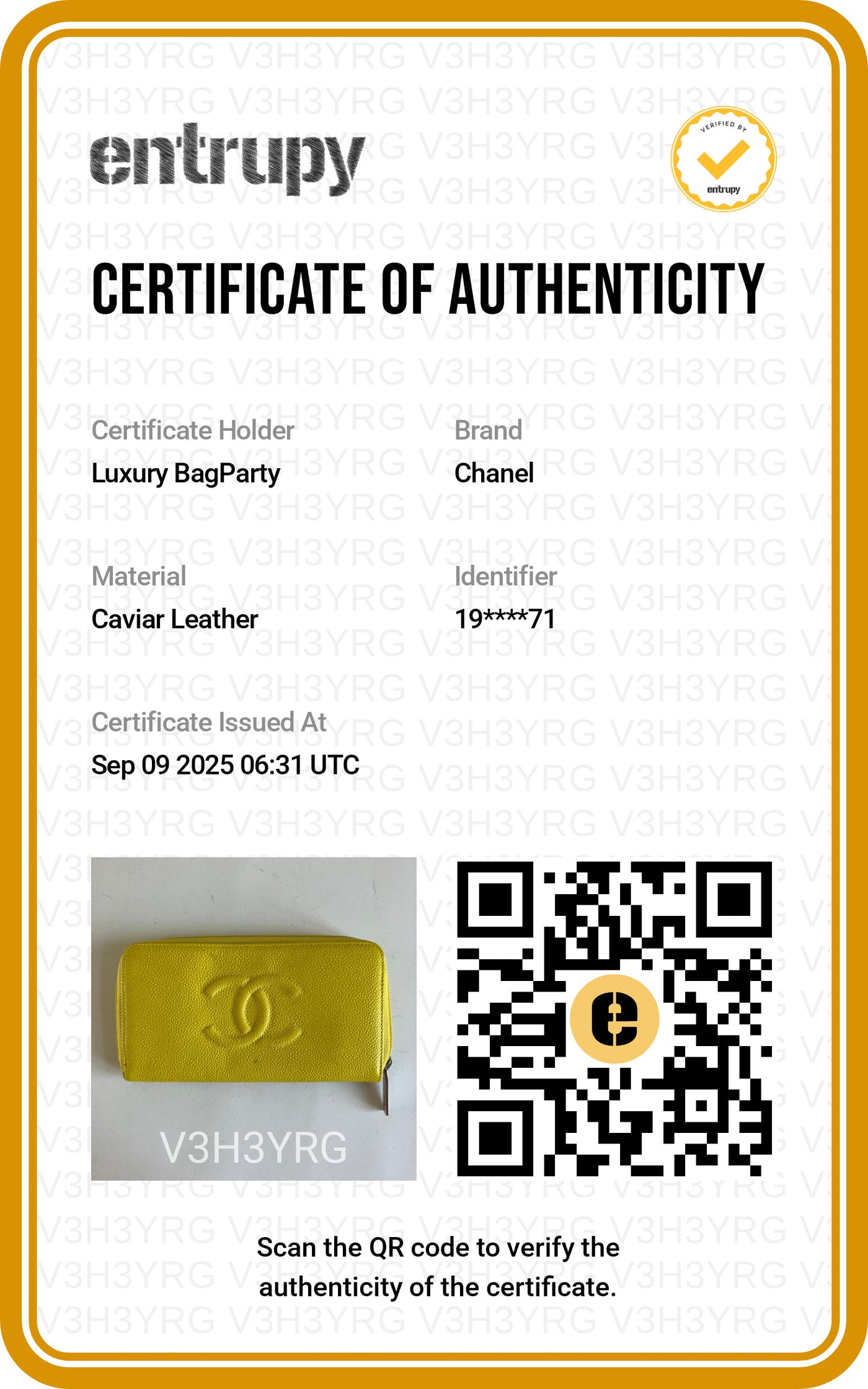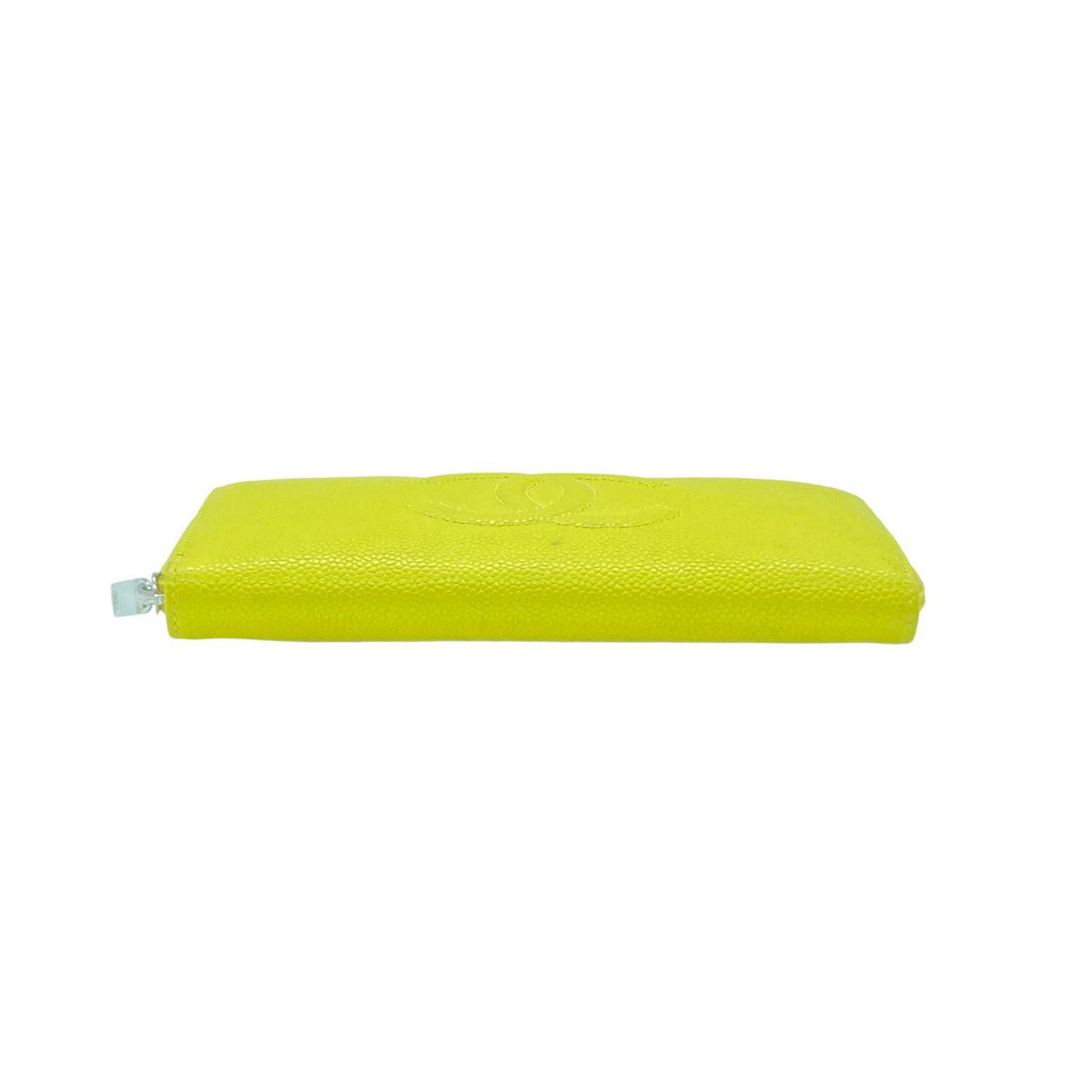 Inform when this item available Chanel Caviar Leather CC Zip Long Wallet Yellow(19***71) CC486