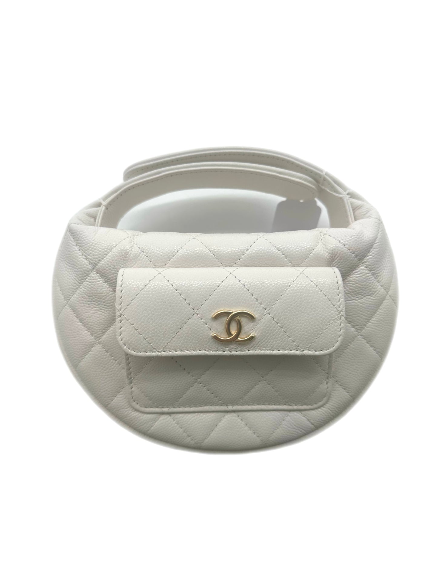 Inform when this item available Chanel Caviar Quilted Polly Pocket Pouch Hoop White (L9***HA) CC438NA