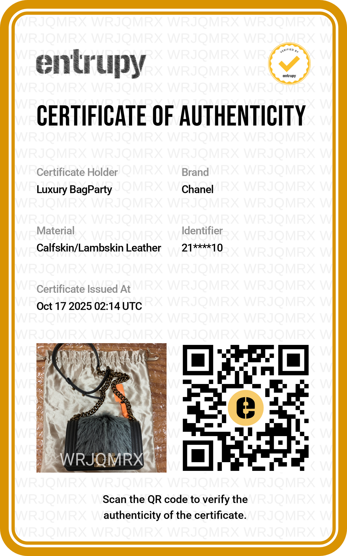 Certificate of Authenticity: Entrupy or Legitmark