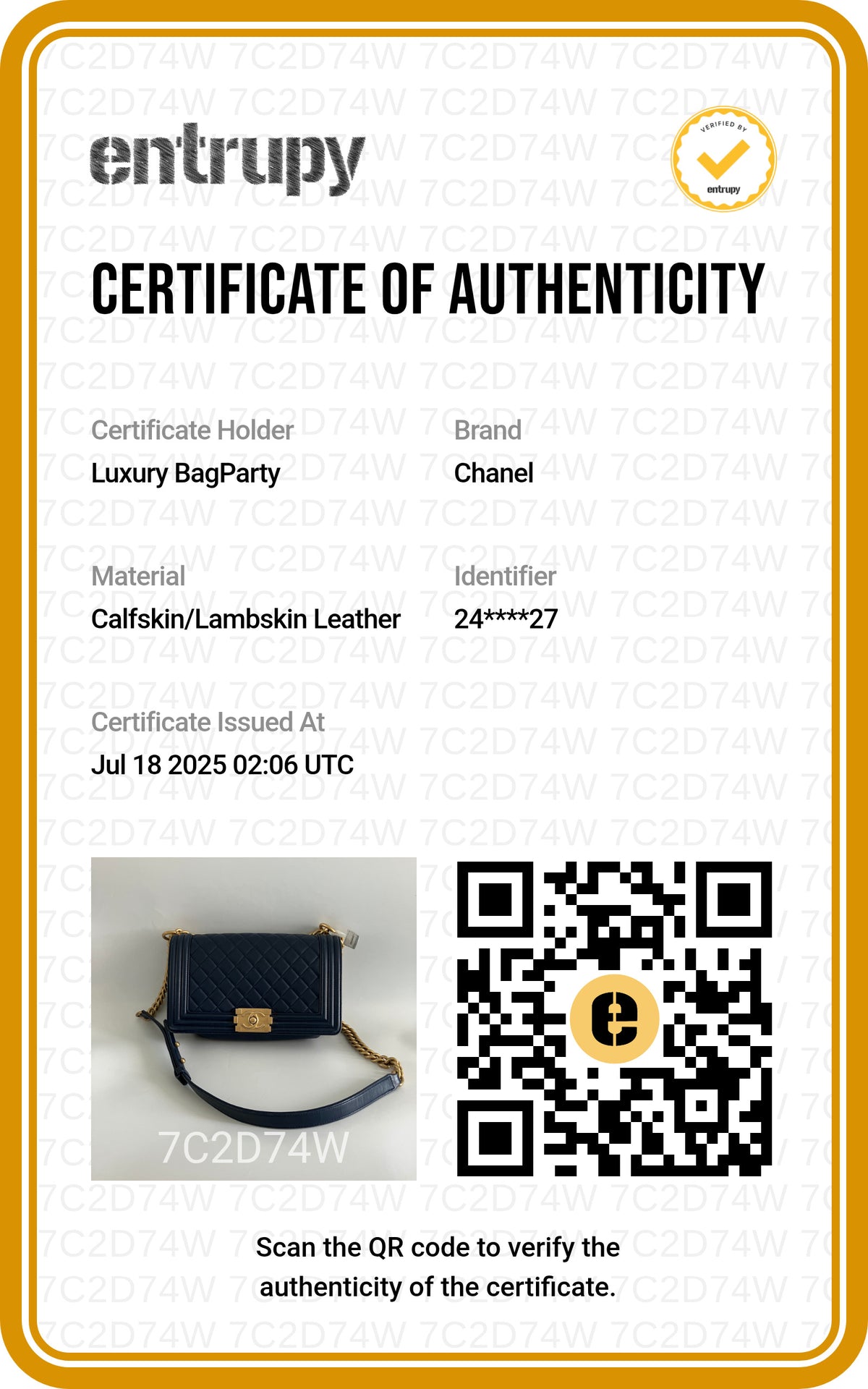 AUTHENTICITY GUARANTEE - Purchase will come with certificate from Entrupy