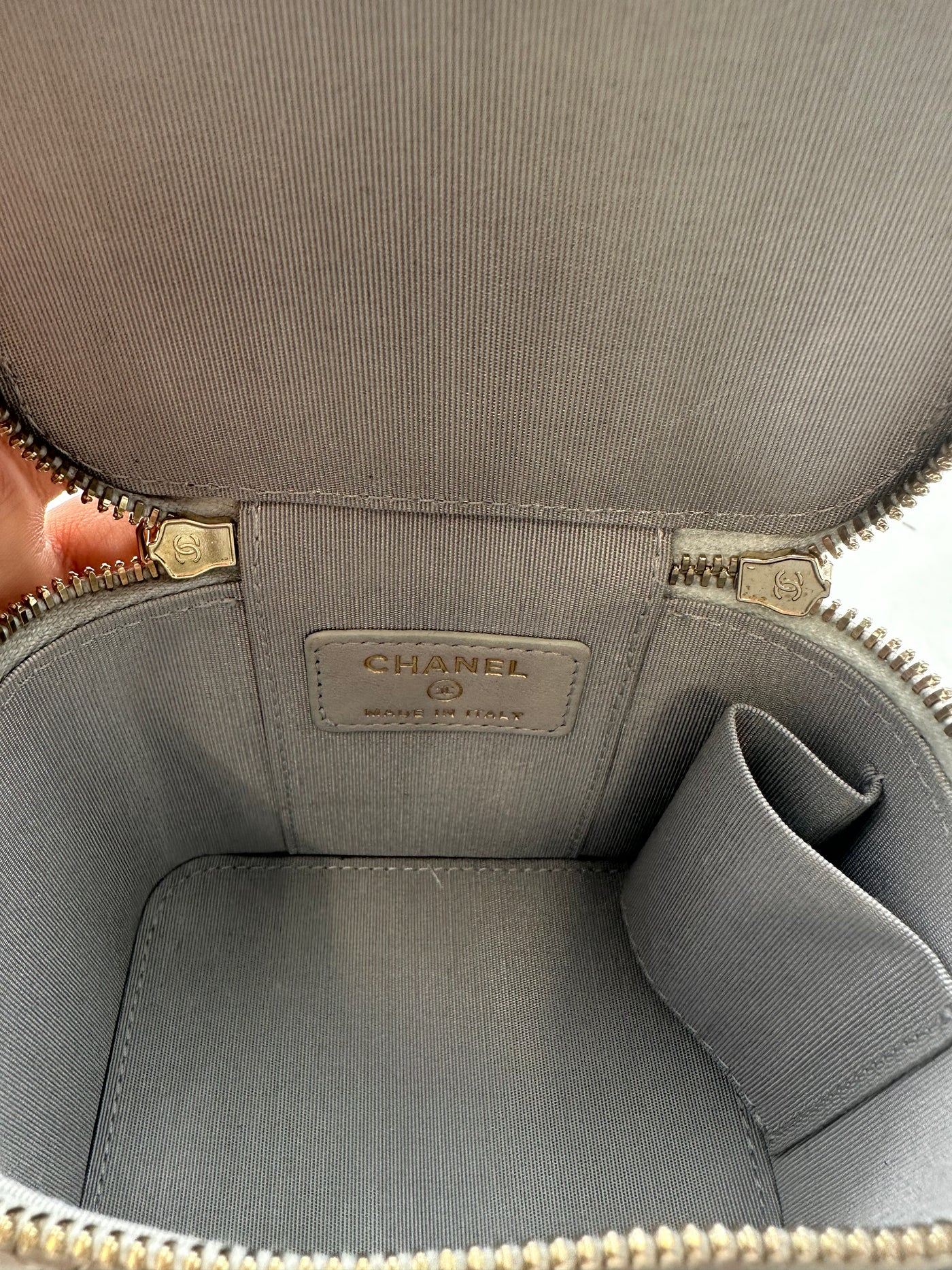 Chanel Lambskin Quilted Mini Vanity With Pearl Grey CC461