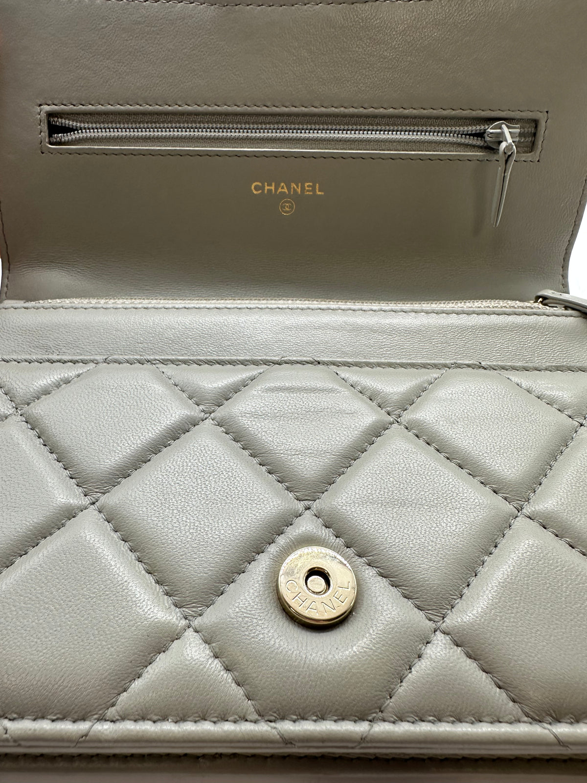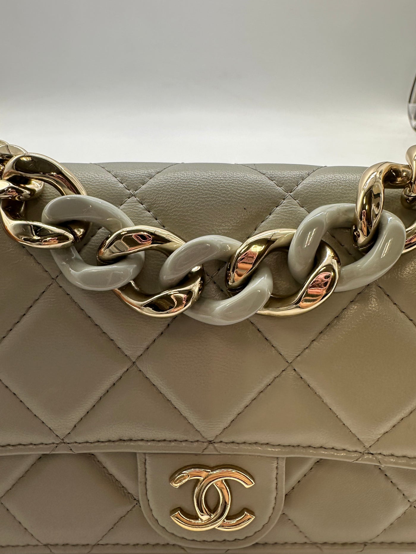Inform when this item available Chanel Lambskin Quilted Resin Flap Bag Grey Microchip CC462AD