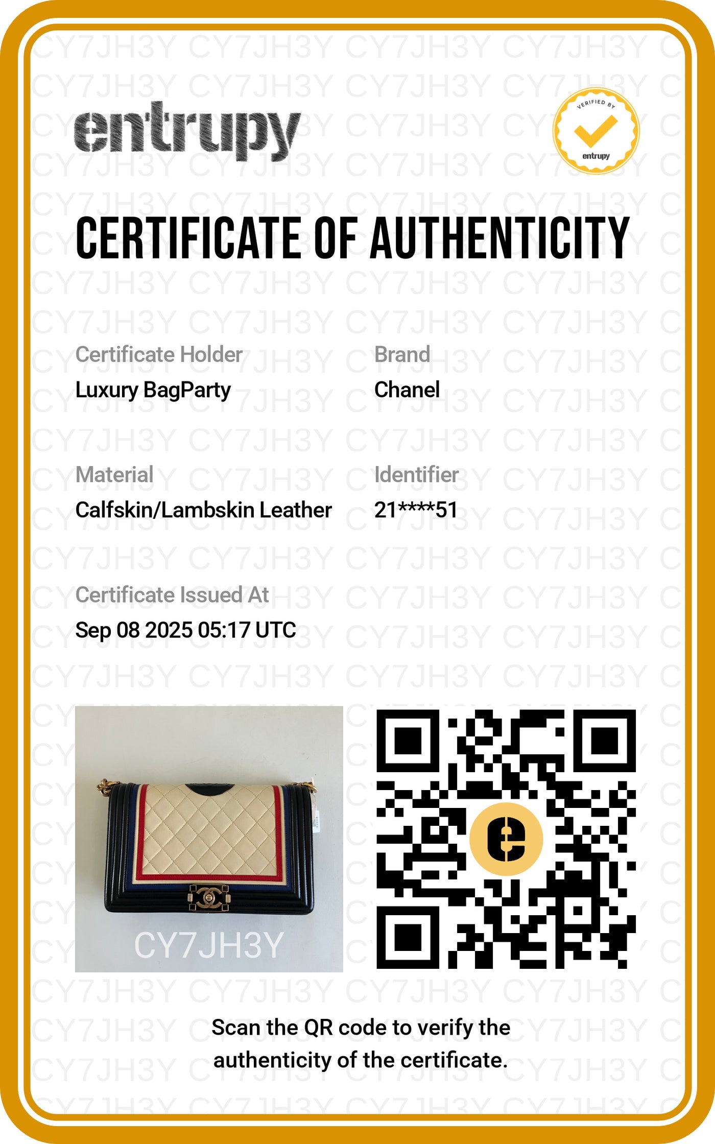 Inform when this item available Chanel Quilted Calfskin Crest Embellished Boy Multicolor (21***51)CC409