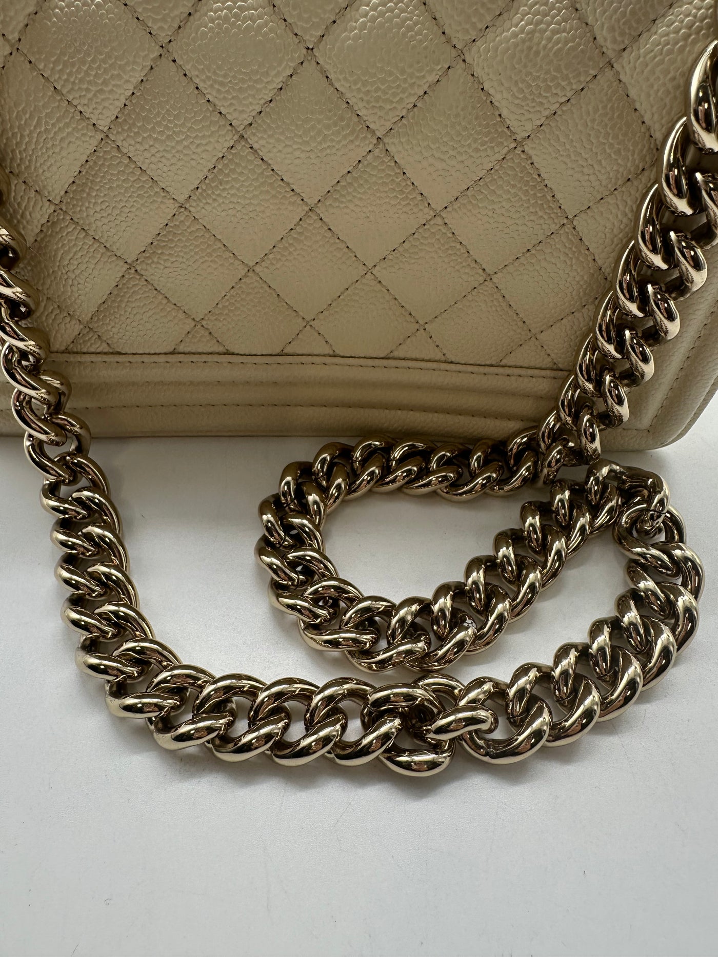 Inform when this item available Chanel Quilted Caviar Flap Small Boy Bag Microchip White/Gold CC500