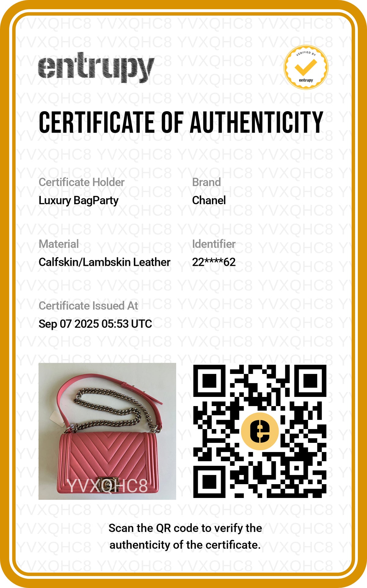 AUTHENTICITY GUARANTEE - Entrupy CoA with every purchase