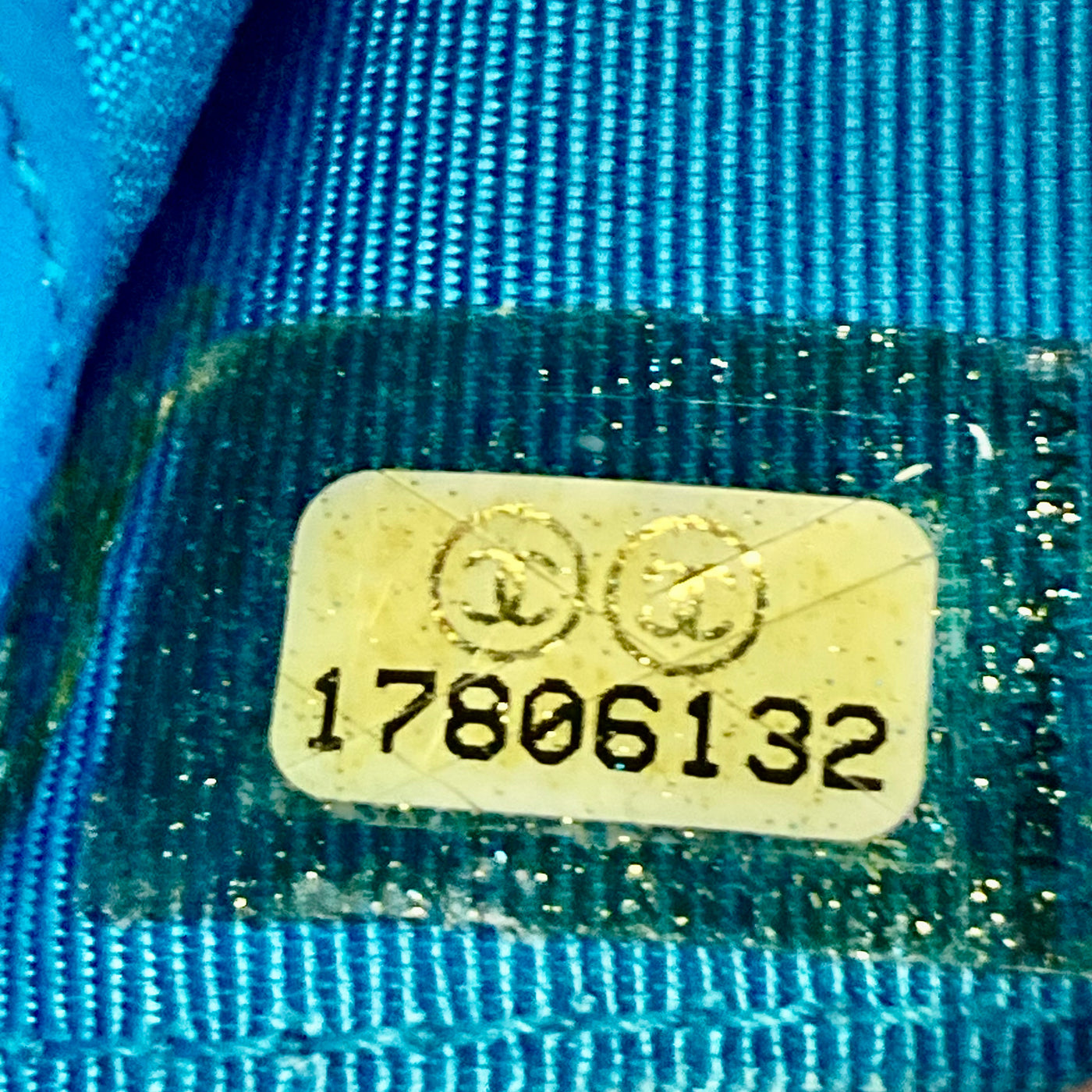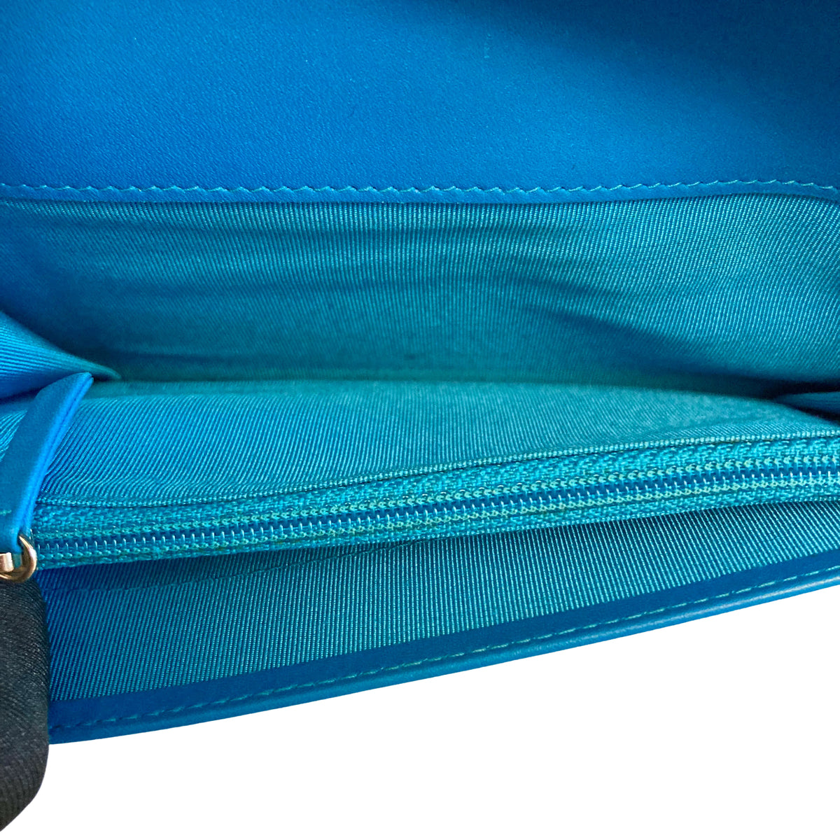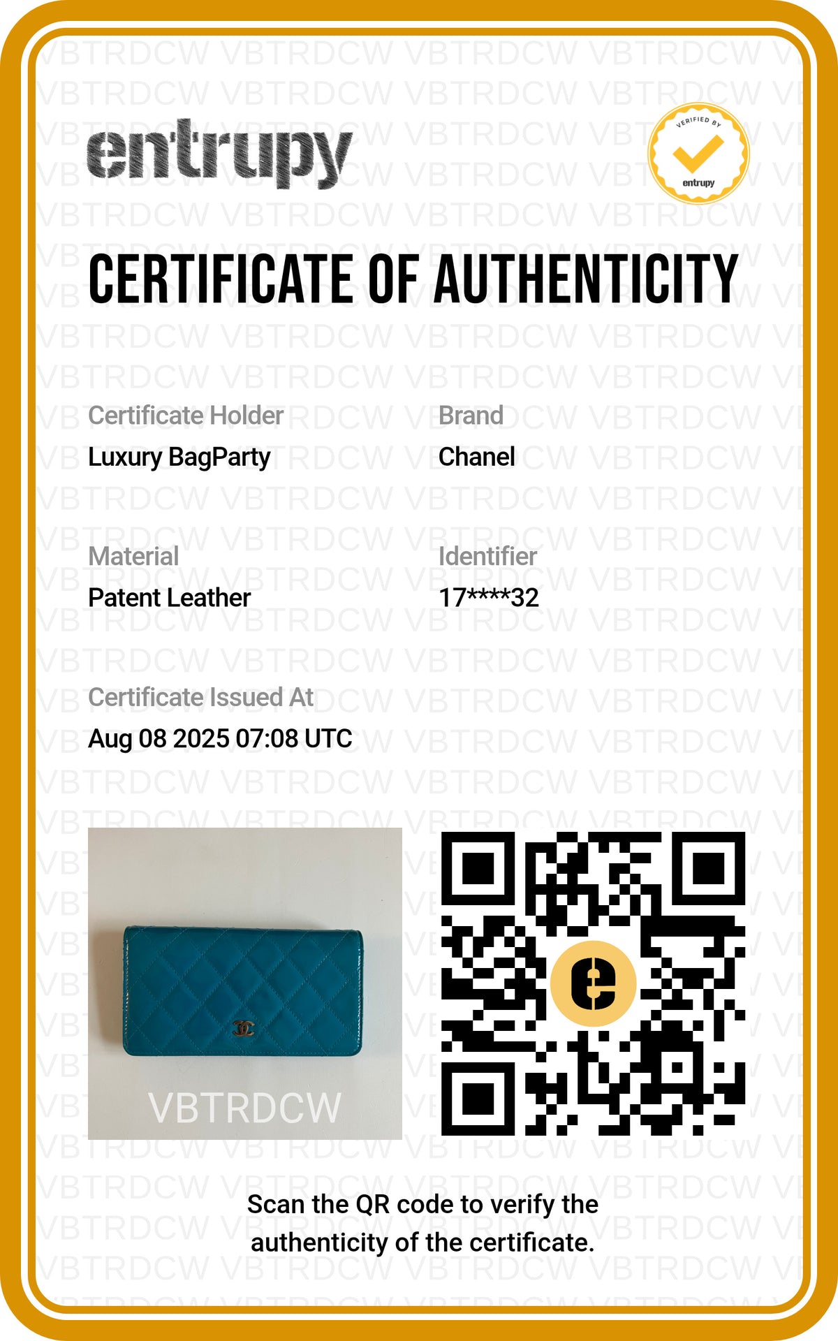 Chanel Quilted Patent Bifold Wallet Teal (17 series) CC301
