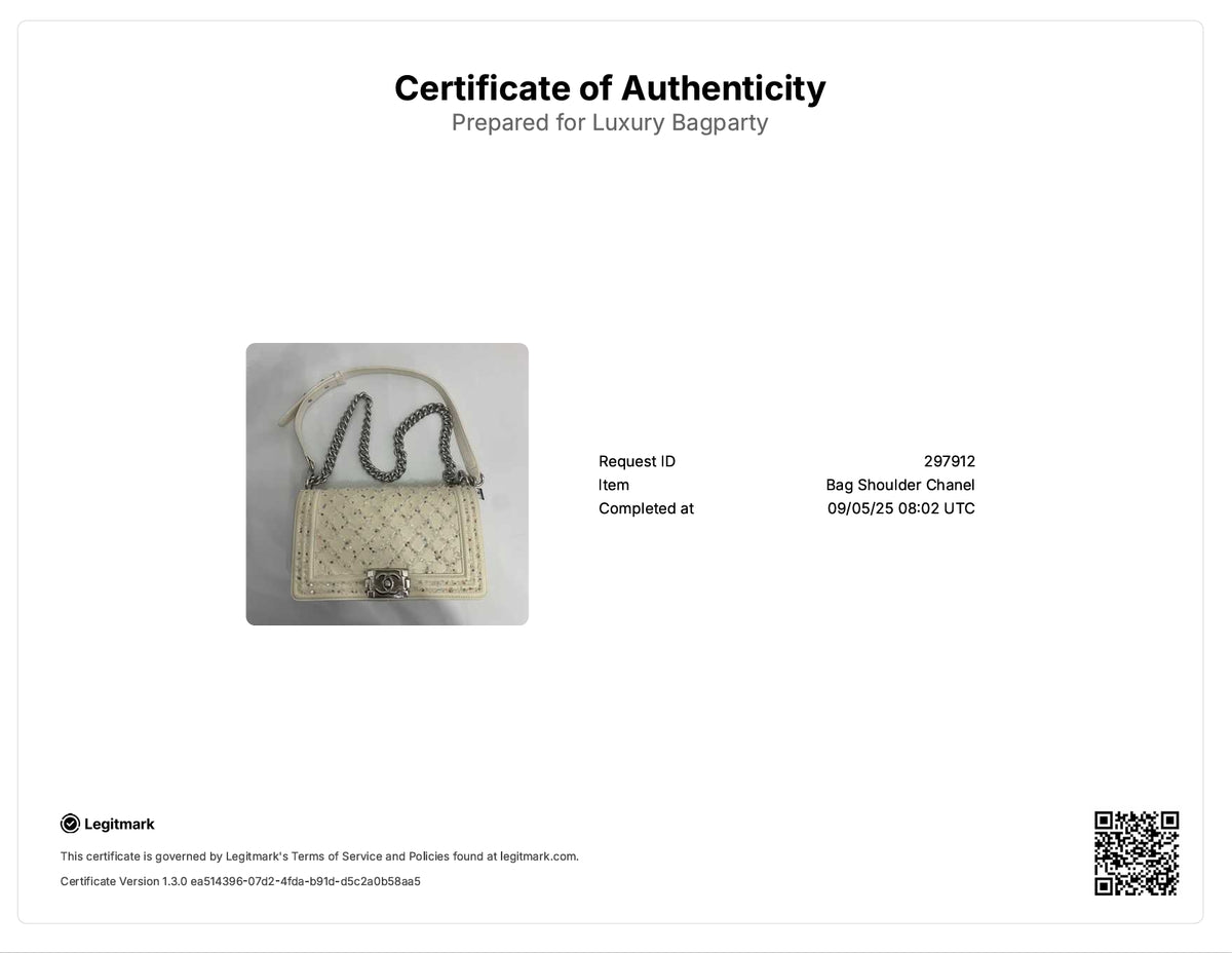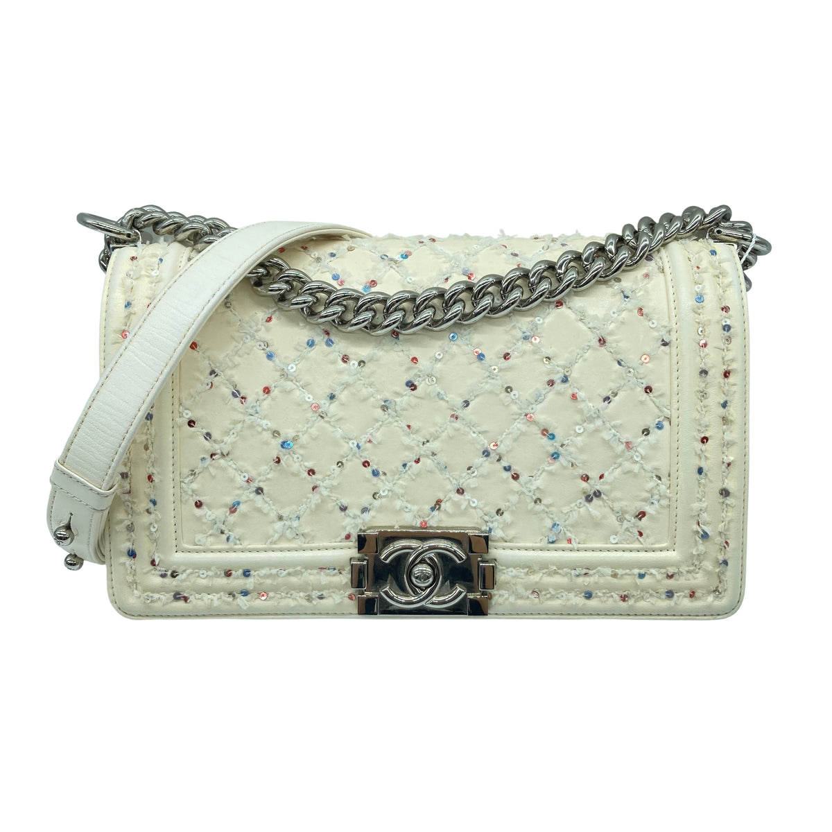 Chanel Sequins Embroidered Medium Boy White (24***85)CC455