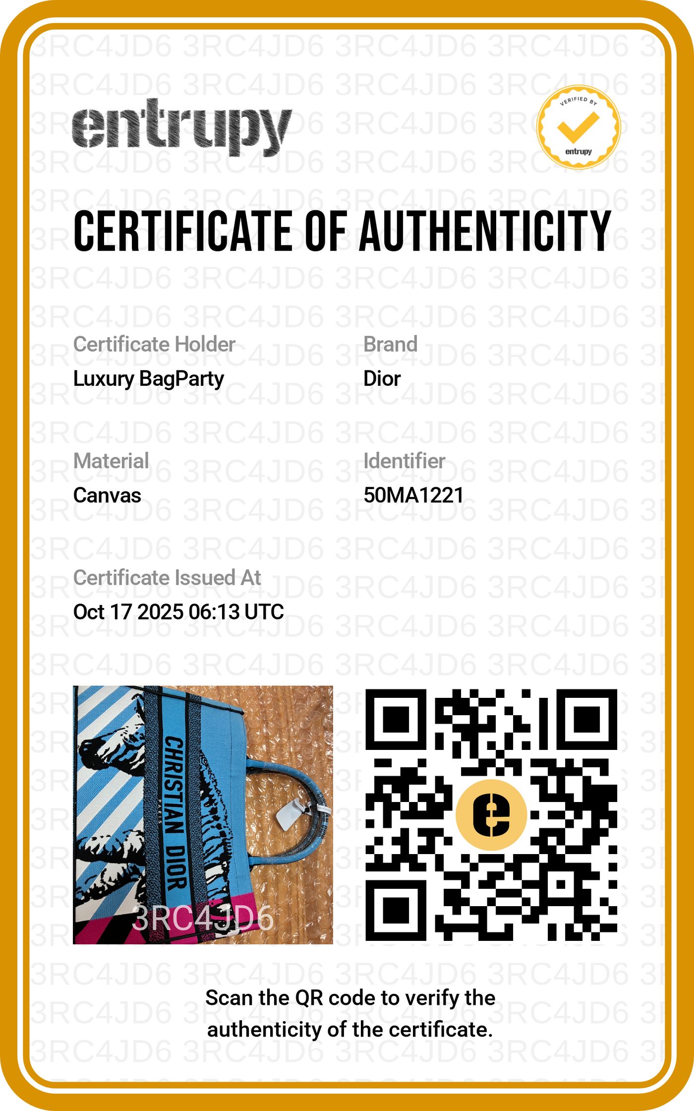 AUTHENTICITY GUARANTEE - Purchase will come with certificate from Entrupy or Legitmark