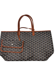 Goyard Goyardine Saint Louis Black Brown Shoulder Tote Bag & Pouch GR17